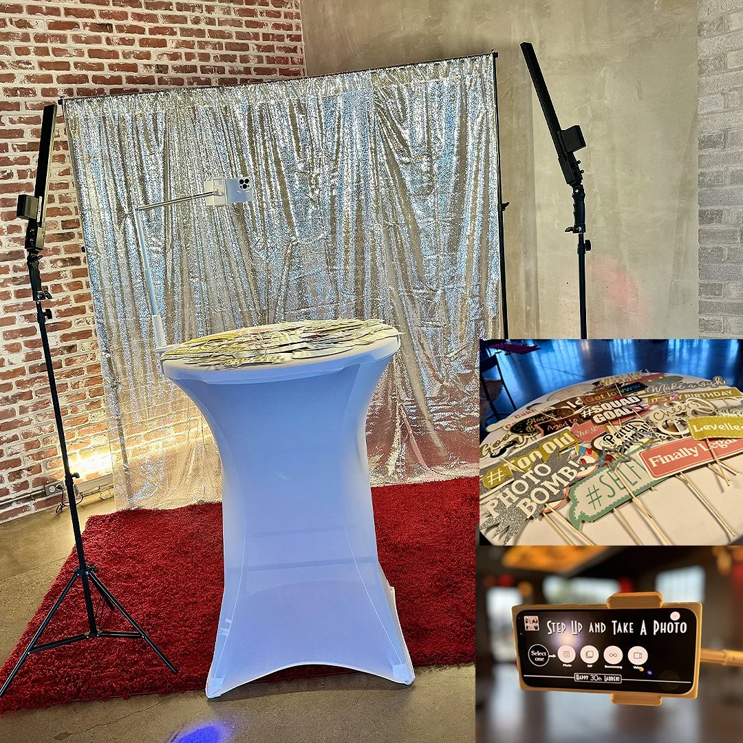 A full-on, professional photo booth experience utilizing a professional DSLR camera, photo printer, backdrops, accessories, and more. Each photo will be physically printed twice. You can opt to have the guests take both, or you can retain one for yourself. You select your backdrop, and all prints will be formatted to reflect the aesthetic of your event. - $600 (3 hours)